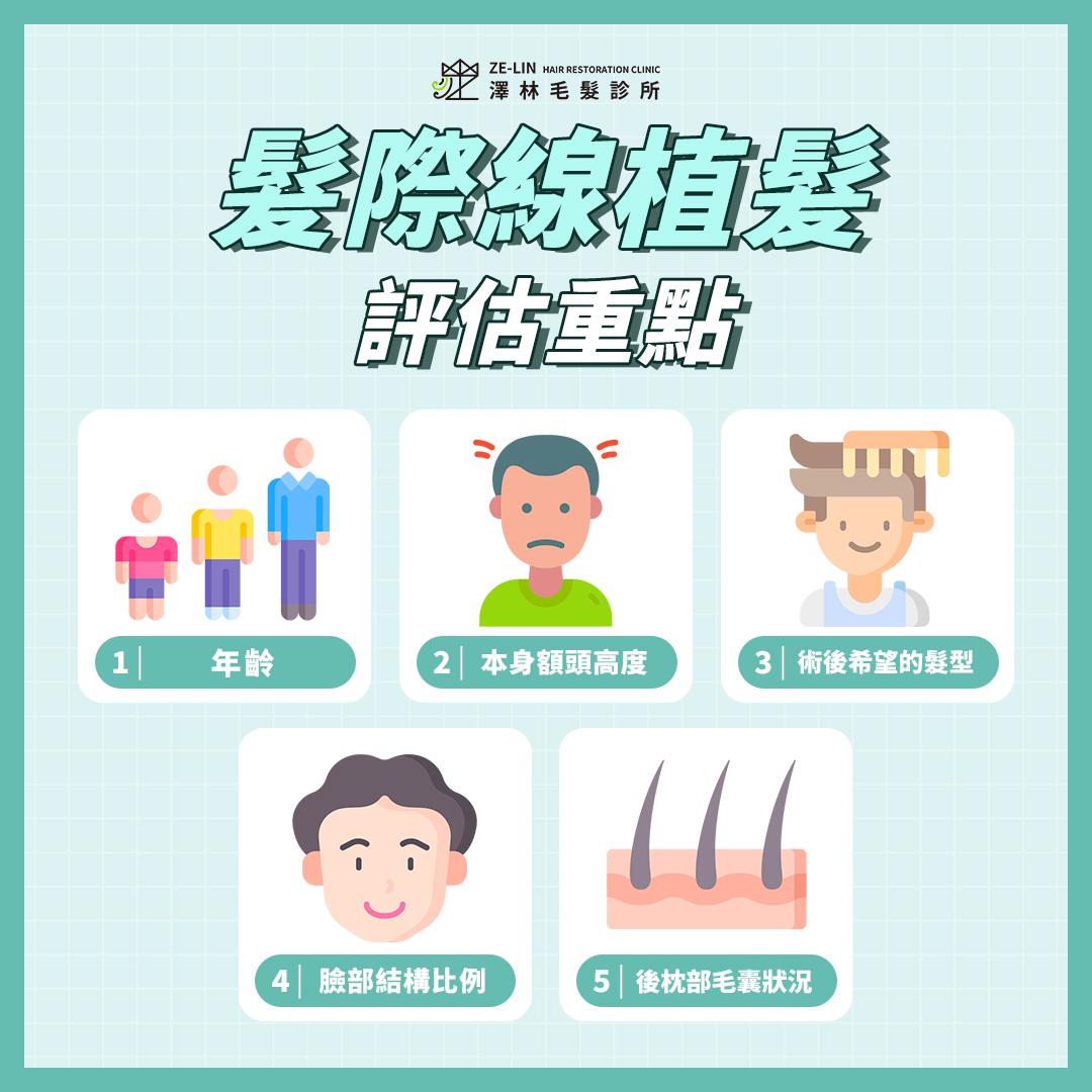 對此,黃銘源醫師表示,理想的髮際線設計不只會根據個人的喜好與期待,同時還要考慮多種因素,才能達到好看又不失自然的外觀,評估的重點包括: